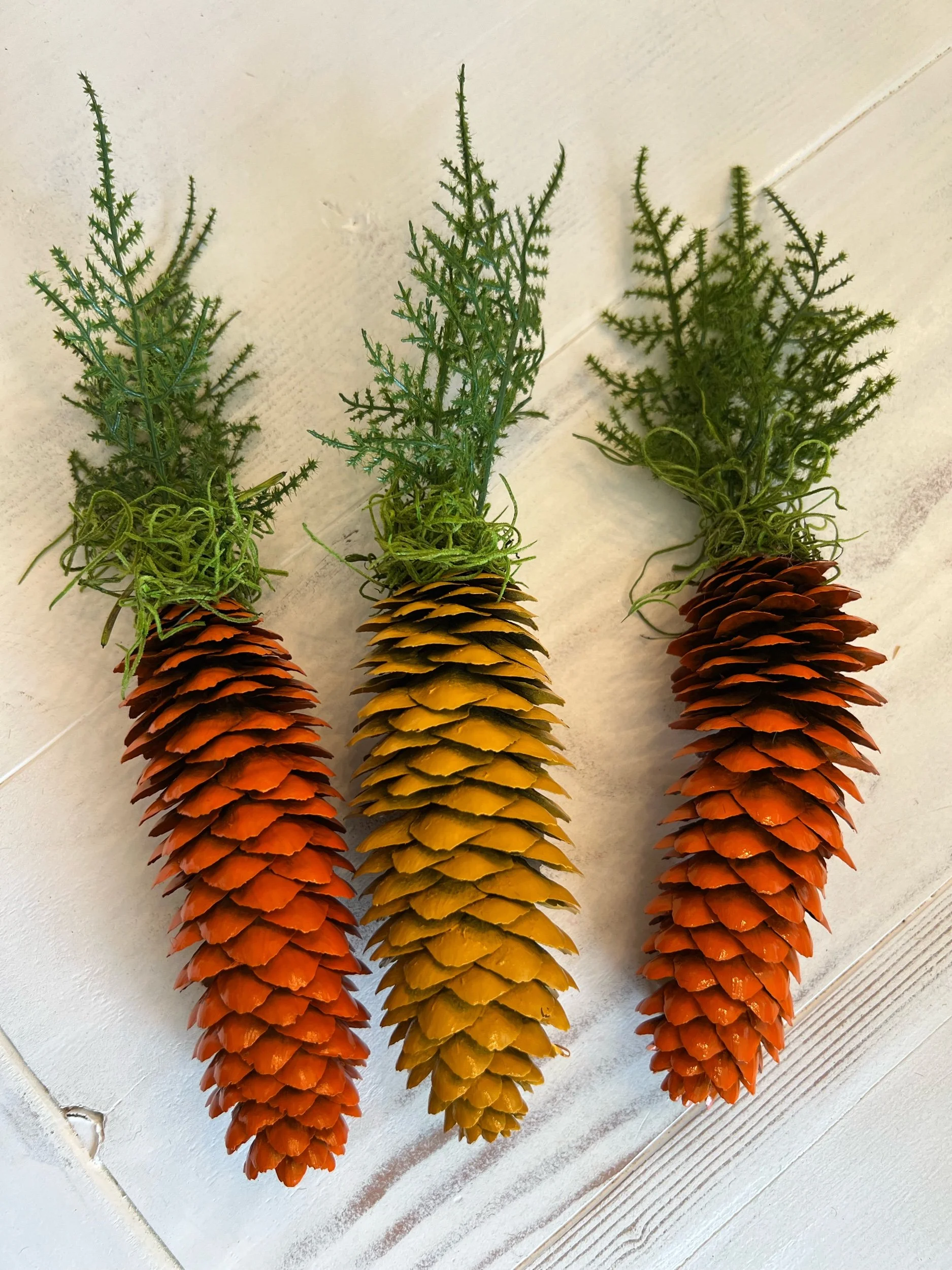 Image 1 of 1 PINE CONE CARROTS $2.00 Pine Cone Carrots with Stem Pine cone: Dark Orange Light Orange Add To Cart Added! Pine Cone Carrots with Stem